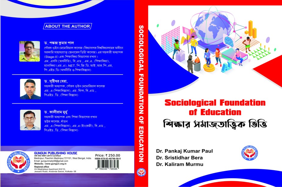 Language: Bengali Title: Sikkhar Samajtattik Vitti Copyright: Dr.Pankaj Kumar Paul, Dr. Sristidhar Bera,Dr.Kaliram Murmu ISBN: 978-93-48796-58-5 Price: 200.00 No. of Pages: 200 Gungun Publishing House First Published in 22 June, 2025. Midnapur, Paschim Medinipur, 721101, West Bengal, India. Phone Number: +91 9647222836 Website: www.gungun.org.in